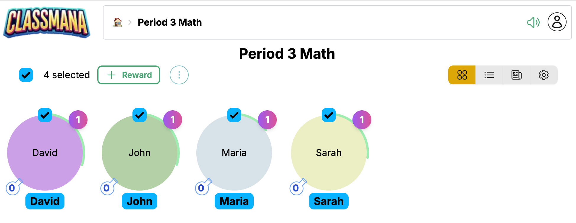 - 보상을 클릭하여 선택된 모든 학생에게 적용